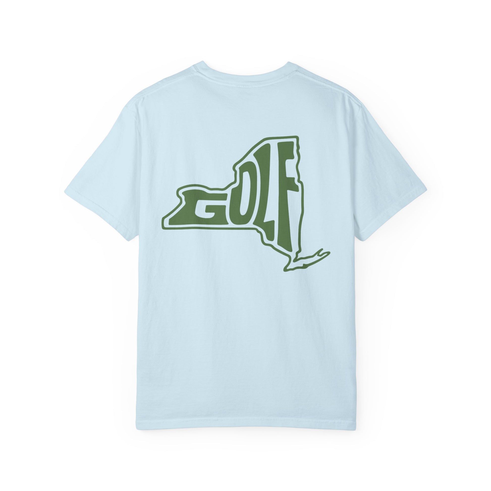A bold take on New York golf. This design fills the outline of New York with the word GOLF, trimmed tight to the state’s shape for a clean, graphic look that feels at home on the course or off.