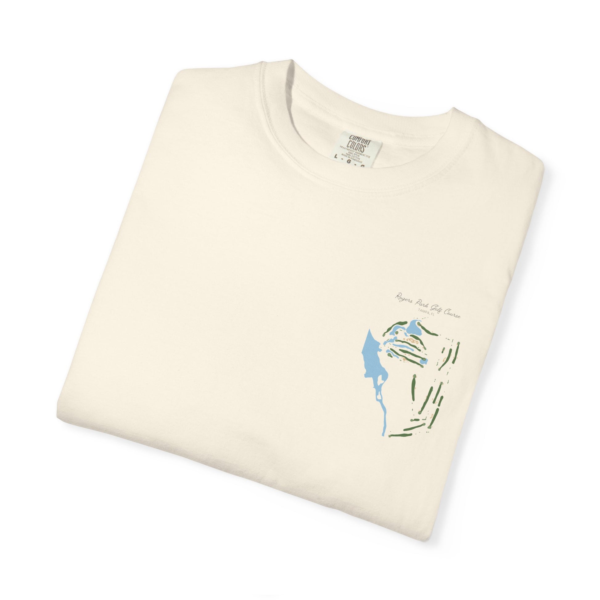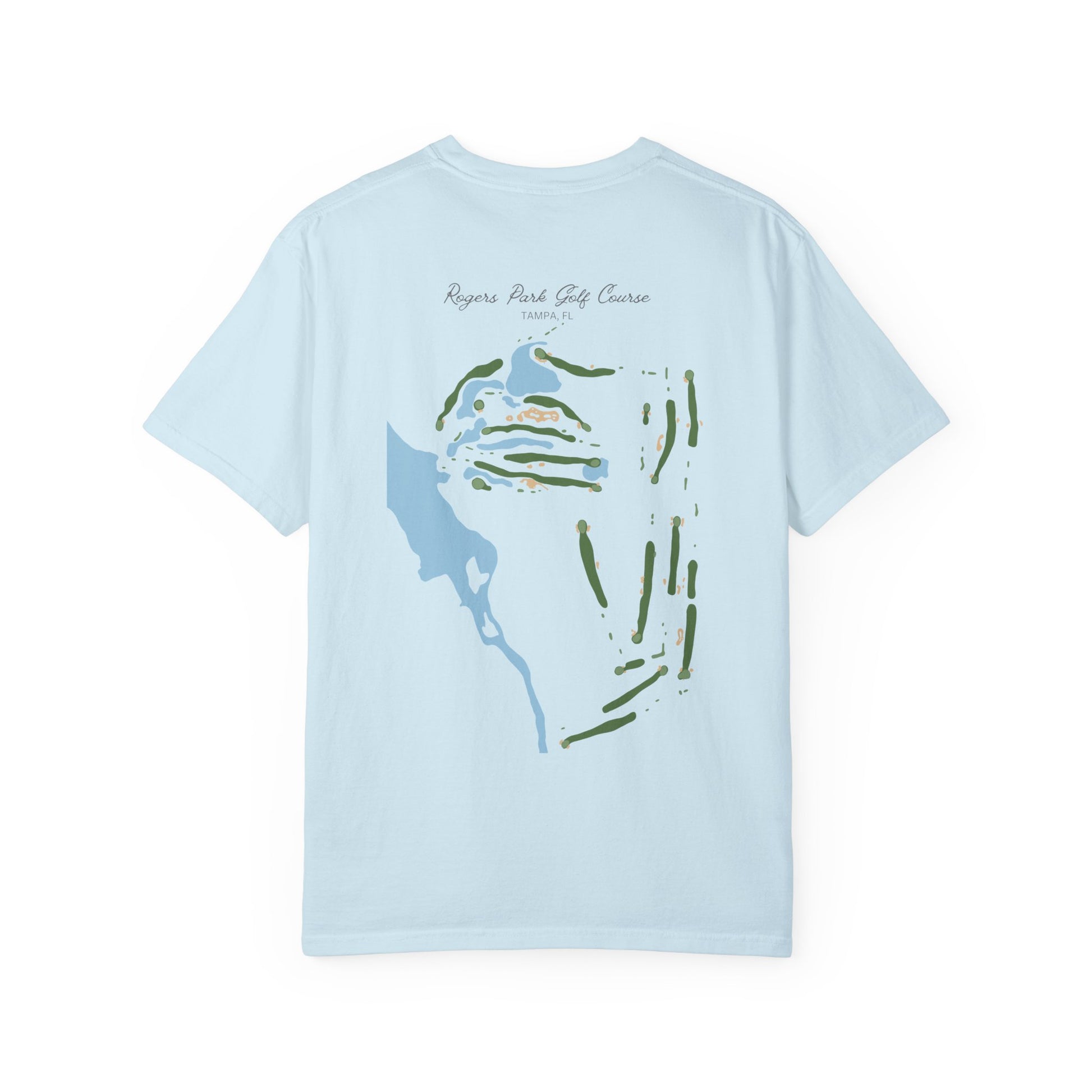 Embrace the vibrant history and scenic beauty of Rogers Park Golf Course with our exclusive custom-designed map t-shirt. Located in sunny Tampa, Florida, this shirt captures the essence of Rogers Park's picturesque fairways, meticulously maintained greens, and strategically placed bunkers. The minimalist design showcases the unique layout of this beloved public course, making it a must-have for any golf enthusiast's wardrobe.
