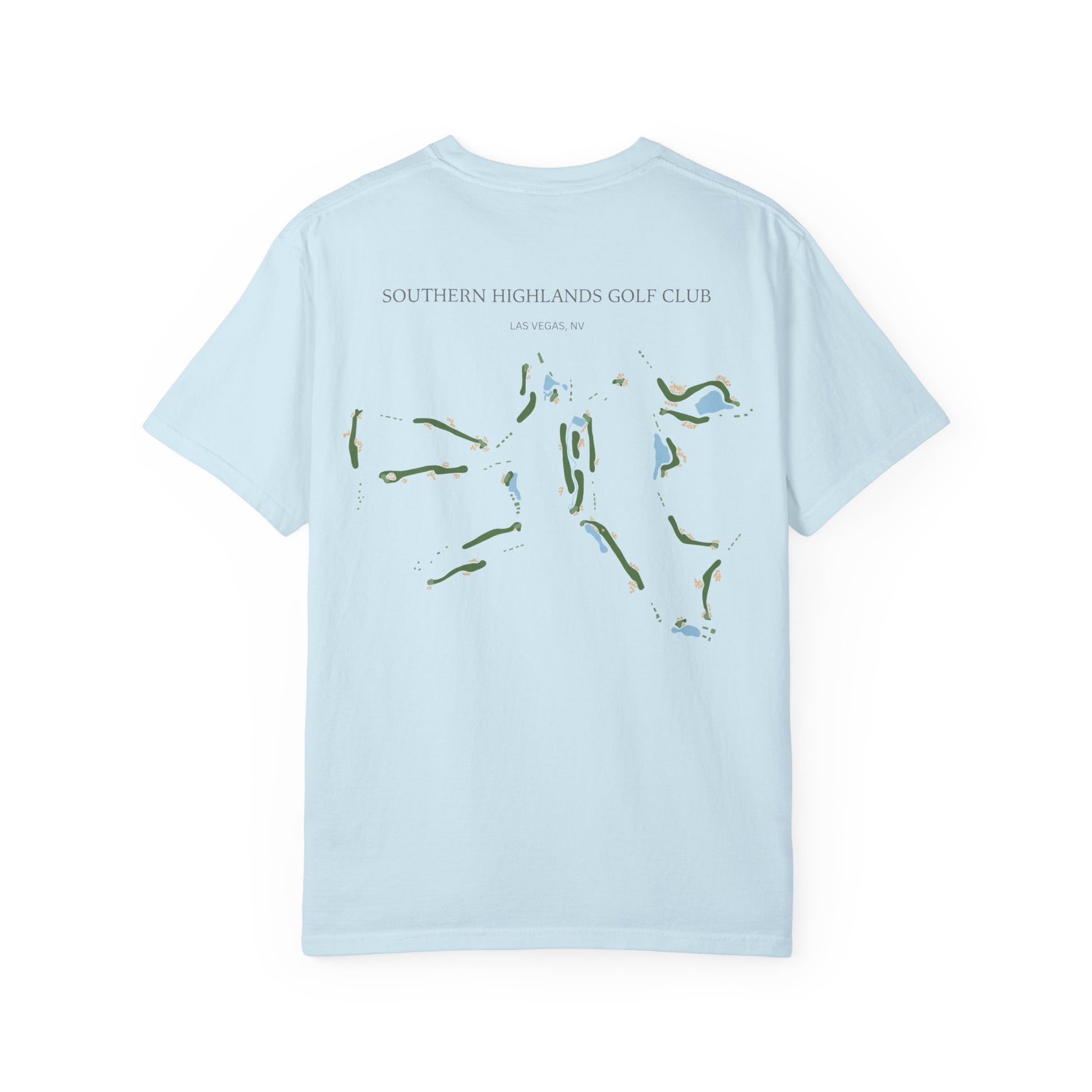 Celebrate your connection to Southern Highlands with our exclusive Course Map Tee, a subtle yet meaningful design that captures the spirit of this beloved Las Vegas, Nevada course. This shirt is more than just apparel; it’s a tribute to the rounds you've played and the memories you've made. Perfect for a casual day at the range, unwinding with friends after a round, or simply bringing a touch of golf culture to your everyday style, this tee effortlessly fits into any golfer's wardrobe. It offers a vintage look and feel, ensuring classic comfort that stands the test of time. Whether you're searching for the ideal gift for a Southern Highlands enthusiast or a personal keepsake to honor your favorite course, this tee is a must-have for anyone who truly loves the game.