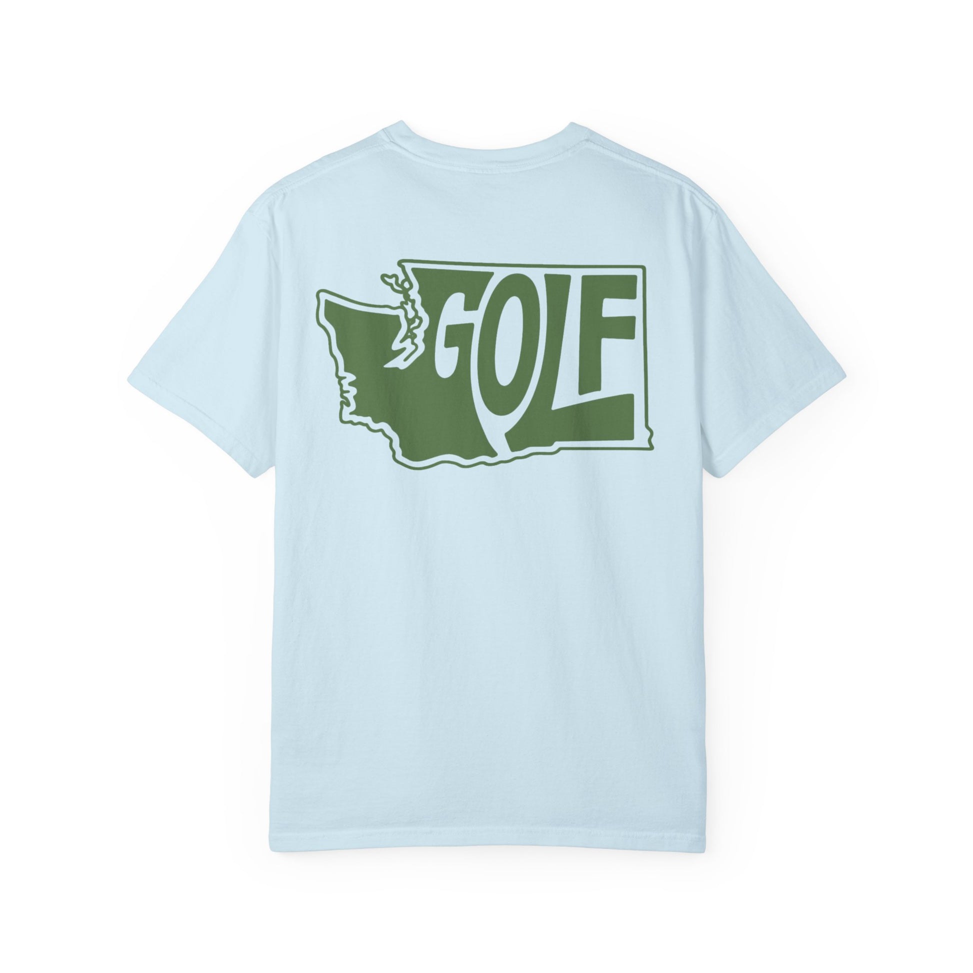 A clean graphic take on Washington golf. This design fills the outline of Washington with the word GOLF, trimmed tightly to the state’s shape for a bold, no-frills look that works on the course and off.